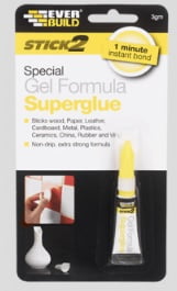 Superglue Gel is a thixotropic ethyl cyanoacrylate based