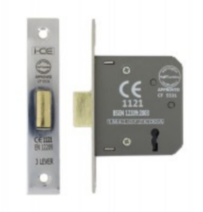 DEADLOCK 3 LEVER NICKEL PLATED 63MM CE1121 APPROVED