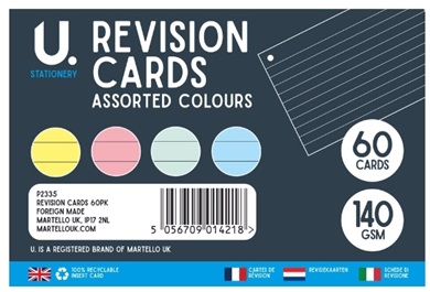 REVISION CARDS ASSORTED COLOURS 60PCE 140GRM